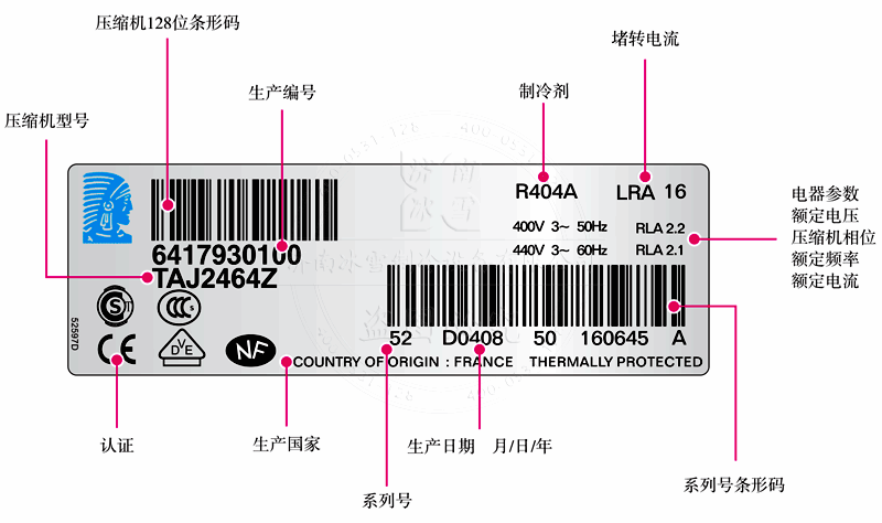 Tecumseh/泰康壓縮機銘牌說明: